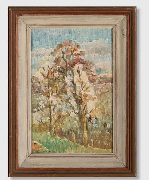 Lot 6 – Grace Cossington Smith, Sprin in Sussex, 1950. Oil, 25 x 16.5cm, est. $12,000-$18,000. Brit Pops