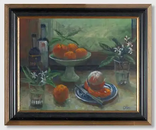 Lot 7 – Margaret Olley, Still Life with Oranges, c.1993, oil, 39.5 x 50 cm, est. $22,000-$28,000. Oranges are not the only Fruit