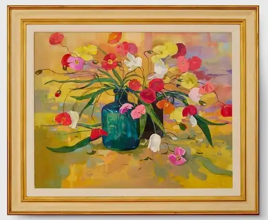 Lot 9 – William Boissevain, Still Life, Poppies, oil, 90 x 120 cm, est. $8,000-$12,000. Poppy Appeal