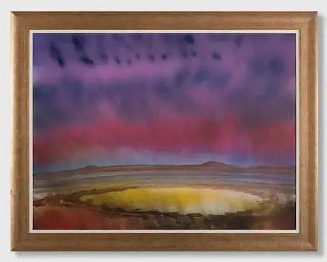 Lot 42 – Sidney Nolan, Salt-Pan, c1986, enamel spray, 91.5 x 122 cm, est. $18,000-$25,000. It All Panned Out Pretty Well In The End