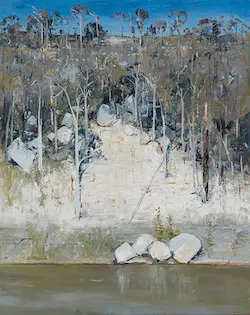 Lot 8 – Arthur Boyd, On the Banks of the Shoalhaven, 1984. Oil, 152 x 122 cm, est. $300,000-$400,000. This Painting Rocks