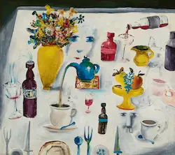 Lot 34 – Charles Blackman, The White Tablecloth, 1956. Oil, 119.3 x 135 cm, est. $1,200,000-$1,600,000. Rare, Rarer, RARIST