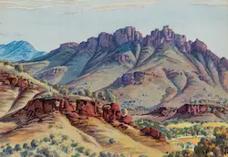 Lot 48 – Albert Namatjira, Glen Helen Landscape, 1954. Watercolour on paper, 26.5 x 38 cm, estimate $30,000-$40,000. Ain’t No Mountain Higher