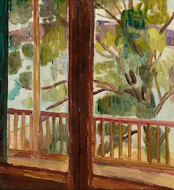 Lot 50 – Grace Cossington Smith, St. Ives (At Hunter’s Hill), 1944. Oil, 31.8 x 29 cm, est. $18,000-22,000. Snives