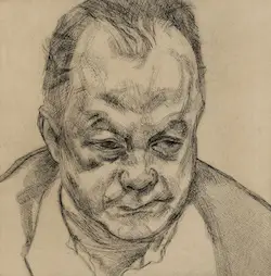 Lot 75 – Lucian Freud, Head of Bruce Bernard, 1985. Etching on paper, 8/50, 29.7 x 29.3 cm, est. $12,000-$18,000. Lucian Freud is etched into my head forever