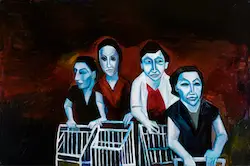 Lot 94 – Robert Dickerson, Women with Trolleys, 2001. Synthetic polymer paint, 120.5 x 180 cm, est. $60,000-$80,000. Thank You For Shopping At Coles