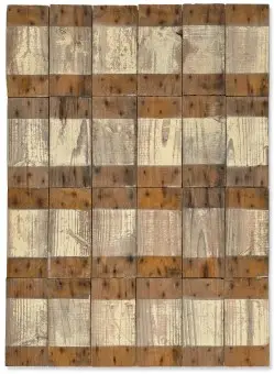 Lot 26 – Rosalie Gascoigne, White and Grey A, 1980. Painted wood, 101 x 73 cm, est. $60,000-$90,000. Make Art Crate Again