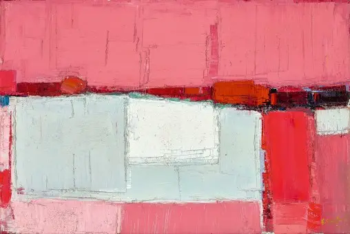 Lot 27 – Guy Grey-Smith, Sunlit Plain, 1965. Oil, 61.5 x 91 cm, est. $25,000-$35,000. In the Pink