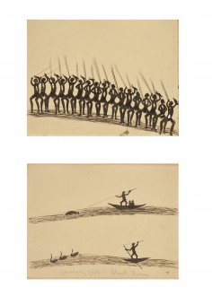 Lot 36 – Tommy McRae, Ceremony / Spearing Fish and Black Swan, c1880. Pen and ink on paper, 22 x 28 cm each, est. $50,000-$70,000. Vote Yes for the Voteless