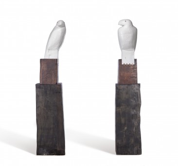 Lot 49 – Bruce Armstrong, Guardians [Pair of Maquettes for the Grand Hyatt Hotel, Melbourne], 2009-21. Cast and painted bronze on timber bases, 205 cm high each incl. base, ed. 6/10, est. $140,000-$180,000. Guardians of My Galaxy