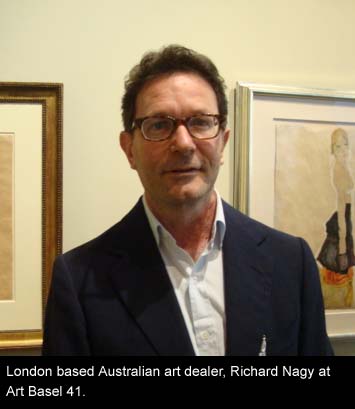 Even though away for more than 25 years, Nagy still considers himself Australian: ‘I have only got one passport, and that is Australian. But you can’t make a a living dealing in art at this level in Australia. 99% of the Australian market consists of Australian artists, just like any other art market.’ As he sees it, another obstacle for international art in Australia is that there is not the depth of wealth accumulated over many generations unlike in Europe or the USA, where there are also much larger populations. So price levels of international art are still an issue for Australian buyers. His assessment of his current Art Basel is positive: ‘It is already better than 2009, plus we have a number of reserves that I hope to see converted. This year, we have seen a lot more Americans, who skipped 2009, and of course their dollar is stronger.’