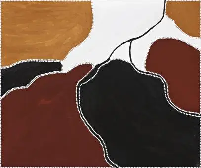 Lot 1 – Daniel Walbidi, Kirriwirri, 2007, 146.5 x 100 cm. Est. $18,000-25,000. Primary colours make primary artLot 7 – Paddy Bedford, Untitled, 2003, 51 x 76 cm, est. $5,000-7,000. Kind of BlueLot 9 – Paddy Bedford, Mad Gap, 2005, 150 x 180 cm, est. $110,000-150,000. 50 Shades of GreyLot 11 – Emily Kngwarreye, Untitled (Dried Flowers and Fruits), 1990, 151.5 x 122 cm, est. $60,000-80,000. Time to join the dotsLot 20 – Aida Tomescu, Circumflegra II, 2007, 122 x 83.5 cm, est. $10,000-15,000. Paintings with meditative qualities, part 1Lot 21 – Aida Tomescu, Alba 3, 2002, 137 x 83.5 cm, est. $10,000-15,000. Paintings with meditative qualities part 2Lot 23 – William Robinson, Springbrook and Numinbah to Mt Warning, 1996, 92 x 121.5 cm, est. $80,000-120,000. Looking at the earth from an aboriginal view pointLot 35 – Peter Booth, Drawing (Apocalyptic Landscape), 1980, 83.5 x 100 cm, est. $5,000-7,000. Trump’s WorldLot 56 – William Robinson, Grandpop and Children’s Pot, 1997, 19 x 68 x 47.5 cm, est. $15,000-25,000. “Australian Beach Pattern” 60 years laterLot 69 – Ildiko Kovacs, Roadworks #13, 2005, 76 x 102 cm, est. $7,000-10,000. Two of a kind (number 1)Lot 70 – Ildiko Kovacs, Roadworks, 2005, 76.5 x 99.5 cm, est. $7,000-10,000. Two of a kind (number 2)Lot 73 – Robert Klippel, Untitled, 1950, 33 x 25 cm, est. $1,200-1,800. After PollockLot 85 – Freddie Timms, Corcodile Hole (Rugoon), 1998, 100.5 x 120.5 cm, est. $4,000-6,000. Watch out for CrocsLot 88 – Rammey Ramsey, Warlawoon Country, 2007, 150 x 180 cm, est. $10,000-15,000. Modern MondrianLot 109 – Robert Klippel, Untitled, 1972, 23.5 x 25.5 cm, est. $1,200-1,800. LegoLot 142 – Gertie Huddleston, Dusk at Ngukurr, 1997, 98 x 155.5 cm, est. $3,000-5,000. Go GertieLot 152 – Ida Penangke Enalanga, Esther Ngale Kennedy, Carol Panangka Rontji, Three Hermannsburg Pots, 1995 – 1998, est. $1,000-1,500 (3). Namatjira’s legacy lives on