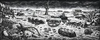 Lot 1, Philip Wolfhagen, Beyond the Garden, 2008, est. $35,000-45,000. Big, Bold and BeautifulLot, Ben Quilty, One Hit Budgie, 2004, est. $12,000-16,000. Watch out for Budgie SmugglersLot 10, Fiona Hall, Material World, 2001, est. $80,000-120,000. Not for economic GirlymenLot 17, Euan MacLeod, Large Boatman, 2006, est. $15,000-25,000. Worth paying for this FerrymanLot 18, Philip Wolfhagen, Study for Burning Heap, 2006, est. $6,500-8,500. Burn Baby BurnLot 25, John Olsen, Early Morning, Frog Movements, est. $40,000-60,000. FrogliciousLot 42, Bronwyn Oliver, Twist, 1991, est. $70,000-90,000. Twist and ShoutLot 43, Rosalie Gascoigne, Pavement II, 1997, est. $55,000-75,000. Follow the Yellow Brick Pavement?Lot 44, Jeffrey Smart, The Caravan Park, est. $650,000-850,000. There’s camp and there’s campingLot 65, John Brack, Reclining Nude, 1981, est. $35,000-45,000. Lay on with CrayonLot 66, Constance Stokes, Marguerites and Cornflowers, 1930, est. $15,000-20,000. Misty MagicLot 72, Robert Dickerson, The Sunbather, 1987, est. $20,000-30,000. Max Dupain … who’s he?Lot 73, Albert Tucker, Woman, 1950, est. $45,000-55,000. Tucker’s ZenithLot 84, Peter Booth, Untitled, 2002, est. $15,000-20,000. Till Death do us drawLot 86, Albert Namatjira, Ghost Gum and Gorge, Central Australia, 1952, est. $30,000-40,000. Ghost Gum with the Mostest Plus Gorgeous GorgeLot 98, Clifford Last, Metamporphosis II, 1987, est. $15,000-20,000. Take me to your LeaderLot 129, Charles Blackman, Children, est. $10,000-15,000. SublimeLot 133, Robert Dickerson, Tete a Tete, est. $8,000-12,000. Life before TinderLot 142, Adam Cullen, Giraffe, 2002, est. $4,000-6,000. Go on, stick your neck out!Lot 143, Noel McKenna, Sooty Owl, 1997, est. $2,500-3,500. Would you like fries with that?