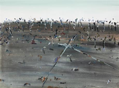 Lot 37, Fred Williams, One Tree Hill, Ferntree Gully, 1968, est. $45,000-65,000. Gouache, not Gauche