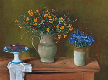 Lot 74, Margaret Olley, Still life with flowers and plums, est. $60,000-80,000. The Melody of Margaret