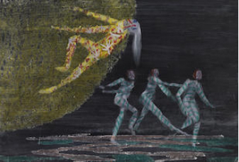 Ever the great experimenter, there are also some wonderful examples of Nolan’s later spray enamel paintings. Below are my picks of the bunch, aka Dave’s Faves.
