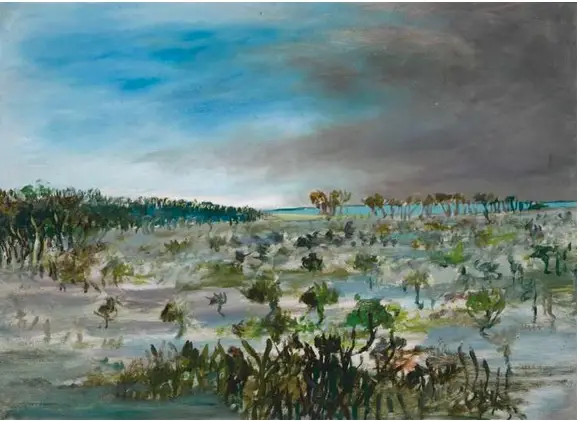 Lot 5, Arthur Streeton, Venice Canal c1908, estimate $20,000-30,000. BellissimaLot 12 Cedric Morris, July Flowers and Wood Warblers 1929, est. $9,000-12,000. Wonderful Wood WarblersLot 17, Albert Namatjira, Untitled, est. $20,000-30,000. Tree-t yourselfLot 20, Rick Amor, Boy on the Beach, 2000, est. $28,000-38,000. Time to score an AmorLot 27, William Robinson, Bright Day, Tallanbanna, 2000, est. $30,000-40,000. Blissful BillLot 30, Sidney Nolan, Swamp, 1947, est. $40,000-60,000. Drain the SwampLot 32, Brett Whiteley, Approaching Storm, 1979, est. $60,000-80,000. Green is for GoLot 37, Tim Storrier, Serendipity (Dance to the Music of Time), est. $140,000-180,000. Floral SymphonyLot 38, John Olsen, Murray Flowing into Lake Alexandrina, 1980-82, est. $140,000-180,000. Get lost in the LandscapeLot 57, Howard Arkley, Curlicue Console, 1998, est. $30,000-40,000. Somewhere to park your ArkleyLot 58, Danie Mellor, A Point of Order (New Worlds from Old Power), 2010, est. $30,000-40,000. The Glittering PrizeLot 60, Emily Kame Kngwarreye, Untitled (Wildflower Dreaming), 1992, est. $30,000-40,000. Australia’s greatest Aboriginal artistLot 63, Minnie Pwerle, Awelye Atnwengerrp, 2000, est. $4,000-6,000. A Pearl of a PwerleLot 69, Tom Roberts, Tasmanian Landscape c1926, est. $18,000-24,000. The King of Plein AirLot 84, McLean Edwards, Nighthead 2013, est. $12,000-16,000. His Blue Period!Lot 85, S.T. Gill, Tracking, est. $4,000-6,000. Track this DownLot 91, B. E. Minns, The Harbour Bridge 1930, est. $5,000-7,000. The unabridged VersionLot 94, Charles Blackman, Alice Drinking a Cup of Tea, 1957, est. $9,000-12,000. Iconic 50s AliceLot 109, John Coburn, Beast 1985, est. $12,000-16,000. Solid GoldLot 112, Elisabeth Cummings, Ingrid’s Place at Night 1998, est. $12,000-16,000. Ingrid Ignites