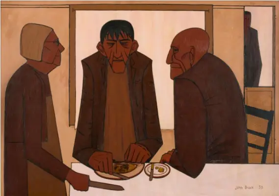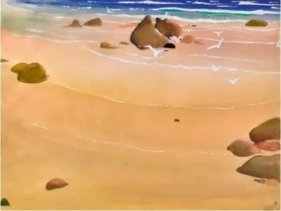 Lot 3, Adrian Feint, Flowers with Sunset: Panel for “Orion”, 1946, est. $15,000-20,000. Feint’s MasterpieceLot 9, Fred Williams, After Bushfire (1969), est. $380,000-420,000. There she grows again!Lot 10, Albert Tucker, Image of Modern Evil 29 1946, est. $800,000-1,000,000. The Evil Eyes have it!Lot 11, William Dobell, Study for Margaret Olley (1948), est. $180,000-220,000. Olley LivesLot 14, Brett Whiteley, Two Giraffes No. 2 1964-85, est. $90,000-120,000. Stop rubbernecking and buy it!Lot 17, Brett Whiteley, Wategos Beach, Holiday Suite 9 1989, est. $60,000-80,000. Where seagulls dareLot 18, Brett Whiteley, Wategos Beach, Holiday Suite 7 (1989), est. $50,000-70,000. We can all draw something from thisLot 19, William Robinson, Sunset and Rising Moon 1993, est. $60,000-80,000. I can fly!Lot 20, Brett Whiteley, Shao 1979, est. $850,000-950,000. Shao steals the showLot 23, John Brack, Study for Standing Nude 1970, est. $30,000-40,000. Brack BeautyLot 32, John Perceval, Warburton Ranges Aboriginal Child (1958), est. $45,000-65,000. Precious Perceval PotteryLot 33, Ian Fairweather, Portrait (1939), est. $80,000-100,000. A Fairweather FriendLot 34, Sidney Nolan, Carcase 1953, est. $150,000-180,000. Dedication through Drought and DeathLot 35, Fred Williams, Summer Snow at Perisher (1976), est. $500,000-700,000. Go SnowLot 38, Clarice Beckett, Bathing Boxes (1934), est. $35,000-45,000. Minimal subliminalLot 53, John Brack, The Return of the Prodigal Son 1953, est. $600,000-800,000. The IconicLot 67, Cressida Campbell, Gold Fish (1984), est. $10,000-15,000. Don’t be Koi