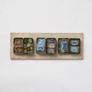 Lot 8 – Sidney Nolan, Burke and Camel, 1964, 76 x 68.5 cm, est. $50,000-70,000. Rollin’ NolanLot 21 – Cressida Campbell, Kitchen Utensils, 1993, 46 x 62 cm, est. $50,000-70,000. My Kitchen RulesLot 59 – Robert Klippel, Opus 240, 1968, 45 x 52 cm, est. $10,000-15,000. Praying MantisLot 60 – Clement Meadmore, Kelly, c1955, 23 cm high, est. $4,000-6,000. Ned Kelly Armed and ArmouredLot 66 – Ralph Balson, Painting no. 36, 1956, 59 x 66.5 cm, est. $80,000-120,000. Balson The BoldLot 86 – Nicholas Harding, Frangipani, 2003, 51 x 51 cm, est. $,500-6,500. Fluid FrangipaniLot 88 – Emily Kngwarreye, Untitled, 1994, 91.5 x 61 cm, est. $6,000-9,000. Stick Your Red Dot HereLot 94 – Noel McKenna, Two Islands, 1988, 23.5 x 29 cm, est. $700-1,000. Islands in the StreamLot 97 – Shaun Gladwell, Study for an aRt Gallery with staircase and lift access, 1998, 40 x 60 cm, est. $2,000-4,000. NGV Contemporary Gallery Proposal Perhaps?Lot 99 – Sidney Nolan, Bottlebrush, 1953, 71.5 x 58.5 cm, est. $25,000-35,000. Don’t Brush This One AsideLot 105 – Rosalie Gascoigne, Collection II, c1976/77, 14 x 38.5 cm, est. $5,000-8,000. Start Your Own Butterfly CollectionLot 109 – Marea Gazzard, Personage II, 2005, 28.5 cm high, est. $4,000-6,000. Marea’s Muted MaskLot 110 – George Baldessin, Untitled (diptych), 11 cm high each, est. $800-1,200. A Fine PairLot 129 – Bronwyn Oliver, Spin, 2003, 32.5 cm high, est. $40,000-60,000. Put Your Own Spin On ItLot 137 – Cressida Campbell, Mandarin with Chinese, Plate, 2004, 17 x 19.5 cm, est. $12,000-18,000. Oranges are not the only fruitLot 138 – Rosalie Gascoigne, Pavement III, 1998, 69 x 52 cm, est. $50,000-70,000. It’s obviously a signLot 147 – Euan MacLeod, Study Tall Iceberg no. 10, 2009, 51 x 38 cm, est. $1,200-2,000. Winter’s Finally Here