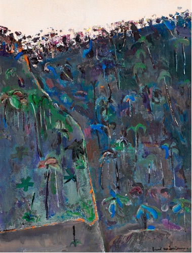 Lot 2 – Fred Williams, Treefern Hillside, near Tallebudgera (1971), est. $30,000-40,000. Fantastic Ferny Fred