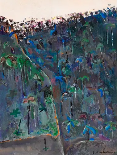 Lot 1 – Arthur Boyd, Narcissus and Cave (1976), est. $30,000-40,000. Take me to the RiverLot 2 – Fred Williams, Treefern Hillside, near Tallebudgera (1971), est. $30,000-40,000. Fantastic Ferny FredLot 3 – Justin O’Brien, Maremma Landscape (1986), est. $60,000-80,000. Paradise FoundLot 7 – Brett Whiteley, Maroeton Bay Fig, Botanic Gardens (1984), est. $900,000-1,100,000. Brett’s branching out againLot 12 – Del Kathryn Barton, Of Pollen 2013, est. $100,000-140,000. Pollinate don’t procrastinateLot 14 – Daniel Boyd, King No Beard 2008, est. $15,000-25,000. This parrot really speaks to meLot 17 – Michael Zavros, Debaser / Marc Jacobs 2010, est. $10,000-15,000. Don’t rub this one off your listLot 19 – John Perceval, Adam and Eve 1951, est. $20,000-30,000. No bad apples hereLot 22 – John Perceval, The Annunciation, 1969, est. $40,000-60,000. Mary gets the good newsLot 24 – Sidney Nolan, Kelly at Glenrowan 1964, est. $150,000-250,000. A Kelly with wellyLot 31 – Russell Drysdale, Long Tom 1961, est. $10,000-15,000. Stick up your hand for this stockmanLot 36 – Brett Whiteley, The Meeting 1981, est. $1,200,000-1,400,000. A Bird in handLot 37 – Sidney Nolan, Carcass of ram 1953, est. $150,000-200,000. Dead setLot 39 – Jeffrey Smart, Flea Market, Paris (1949-1950), est. $70,000-90,000. Make like Manny MacronLot 52 – Richard Larter, Film Goddess 1959, est. $8,000-12,000. A nice little starter from LarterLot 53 – Guy Boyd, Swimmer (1981), est. 10,000-15,000. All ready for the Cole ClassicLot 55 – John Coburn, Tower of Babel 1973, est. $35,000-45,000. I covet this classic CoburnLot 58 – John Olsen, Kalla Kooper in Flood 1978, est. $60,000-80,000. I see a flood of hands go up for this oneLot 60 – Arthur Boyd, The Artist, Rock Cleft and Reflections, est. $50,000-70,000. Is Boyd’s blue for you?Lot 88 – Adrian Feint, (Hibiscus), 1957, est. $4,000-6,000. Lion Island and lion of a paintingLot 90 – Elioth Gruner, Lion Island 1920, est. $15,000-20,000. The lion roars once againLot 91 – Norman Lindsay, The Duke’s Picnic (1945), est. $30,000-40,000. In glorious technicolorLot 98 – Gottfried Lindauer, Maori Girl Learning the Haka (circa 1907), est. $250,000-350,000. Prepare to battle it out with the Auckland Art Gallery. Ka mau te paiLot 100 – Danila Vassilieff, Three Forms (1953), est. $30,000-50,000. Vassilieff rocksLot 110 – Albert Tucker, Image of Modern Evil 1972, est. $20,000-30,000. Evil GrinLot 112 – Albert Tucker, Image of Modern Evil (1972), est. $20,000-30,000. Bronzed Aussie