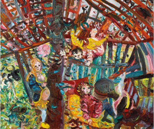 Lot 39 – Jeffrey Smart, Flea Market, Paris (1949-1950), est. $70,000-90,000. Make like Manny Macron