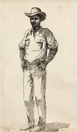 Lot 31 – Russell Drysdale, Long Tom 1961, est. $10,000-15,000. Stick up your hand for this stockman