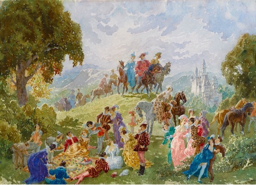 Lot 91 – Norman Lindsay, The Duke’s Picnic (1945), est. $30,000-40,000. In glorious technicolor