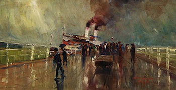 Lot 108 – Gerald Fitzgerald, The Manly Jetty 1896, est. $22,000-28,000. Stunner