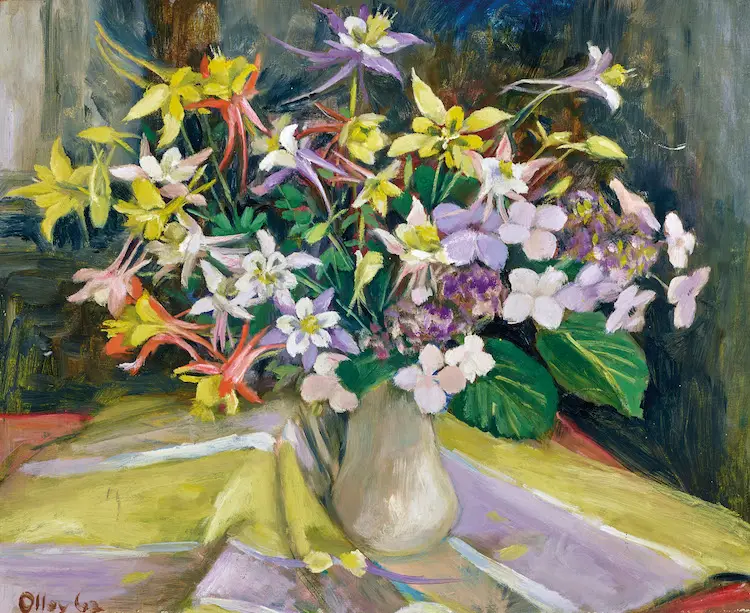 Lot 3, Margaret Olley, Columbines 1962, oil, 46 x 56 cm, est. $40,000-60,000. Spring into Autumn