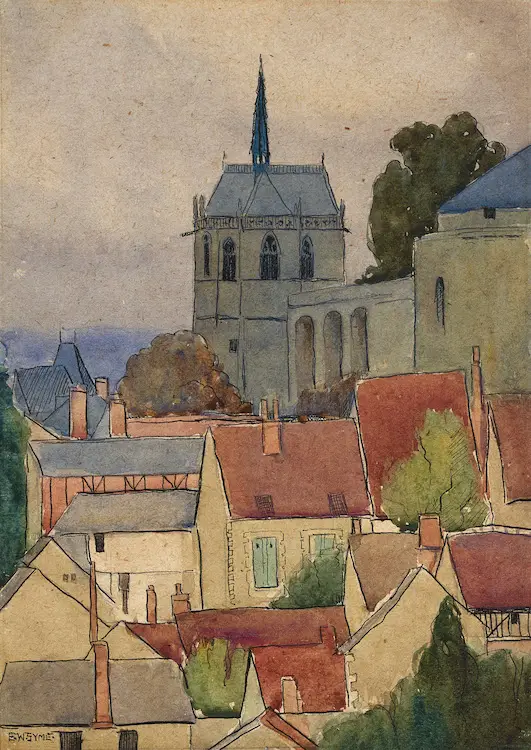 Lot 73, Eveline Syme, The Castle Chapel, Amboise, c1923, ink and watercolour, 29 x 29 cm, est. $4,000-6,000. Simply Syme