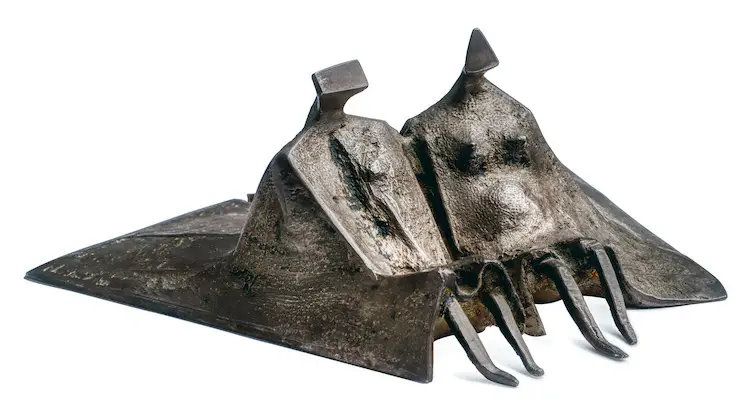 Lot 116, Lynn Chadwick, Sitting Couple, 1980, bronze with silver patina, 5 x 11 x 11.5 cm, est. $10,000-15,000. Have a Chat with Chadwick