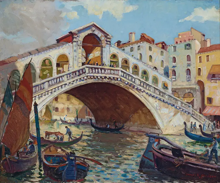 Lot 131, James R. Jackson, The Rialto Bridge, Venice, 1907, oil, 50 x 60 cm, est. $5,000-8,000. No Bridge of Sighs