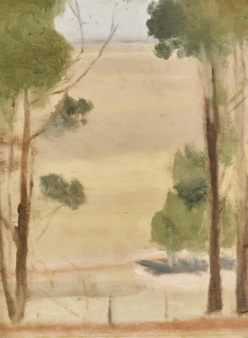Lot 2 – Clarice Beckett, Narignal, Summer on the Plains, c1926-1928, oil, 41 x 30.5 cm, est. $30,000-$40,000. Australia’s most rejuvenated artist shines yet again