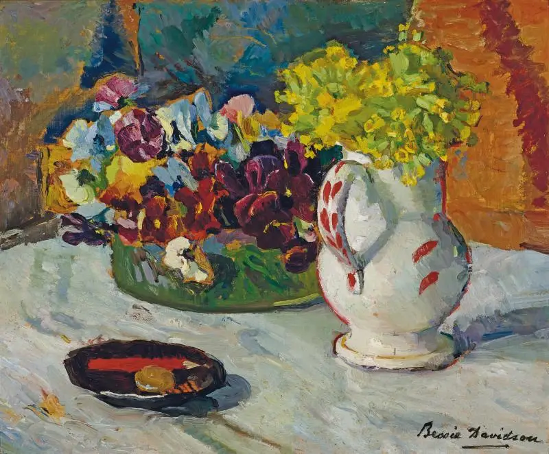 Lot 5 – Bessie Davidson, Still Life with Pansies, oil, 38.5 x 46 cm, est. $25,000-$35,000. Best, Better, Bessie!
