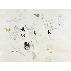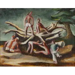 Lot 1, Arthur Boyd, Bride over Shoalhaven, est. □$14,000-18,000. “Married at First Sight”Lot 4, Arthur Boyd, Landscape with Figure and Bird (ca 1963), est. $20,000-30,000. Dickie Attenborough once owned this dickie birdLot 5, Donald Friend. Soldiers making a Bonfire (ca 1942), est. □$8,000-12,000. Soldier onLot 6, Lloyd Rees, Blue Day Tasmania, 1976, est. □$10,000-15,000. Wash away the BluesLot 16, William Robinson, Farmyard 1981, est. □$10,000-15,000. Bill for less billsLot 17, Clifton Pugh, Wrens, 1976, est. □$6,000-9,000. See us on TwitterLot 23, William Dobell, Sydney from Farm Cove (1945), est. □$15,000-20,000. “One of Pro’s old Pros”Lot 34, John Russell, Offshore Breeze, Liguria (1920), est. □$6,000-9,000. Water MusicLot 73, Sidney Nolan, The Pursuit 1955, est. $60,000-80,000. Time to call in the FedsLot 84, Charles Blackman, Children Playing 1964, est. □$7,000-12,000. Top DrawerLot 121, Jeffrey Smart, High C (1957), est. $30,000-50,000. Aaaaahhhhhr!Lot 122, John Brack, Portrait of Dr Ursula Hoff 1954, est. $40,000-$60,000. Brack MagicLot 123, Arthur Boyd, Bridegroom waiting for his Bride to grow up (1957-58), est. $150,000-250,000. Buy Boyd BrideLot 129, Fred Williams, Rocky Hilsside, You Yangs (1974), est. $250,000-350,000. The Yin and the You YangsLot 137, Nicholas Chevalier, Mount Abrupt, 1864, est. $200,000-$300,000. Lest we ForgetLot 140, John Perceval, Tug Boat in the Floating Dock (Williamstown), 1968, est. $90,000-120,000. Float your BoatLot 142, Fred Williams, Hillside Landscape No. 1 (1966), est. $1,000,000-$1,200,000. The Pursuit of PerfectionLot 143, Clement Meadmore, Double Up (1970), est. $80,000-120,000. In awe of MeadmoreLot 144, Lucian Freud, Head of an Irishman (1999), est. $45,000-55,000. “Where’s me Guinness?”Lot 146, Rosalie Gascoigne, Beach House 1990, est. $100,000-$150,000. Shabby ChicLot 152, John Brack, Two Running Girls 1959, est. $1,000,000-1,200,000. Sisters Doing it for ThemselvesLot 153, William Dobell, Sketch for Saddle-My-Nag (1937), est. $25,000-35,000. Title TattleLot 165, John Brack, Christmas Lilies 1955, est. $200,000-300,000. Gilding Lilies, notLot 169, Ben Quilty, Lloydy 2010, est. $25,000-35,000. After Boydy how about Lloydy?Lot 176, Sidney Nolan, Ned Kelly Head 1964, est. $20,000-30,000. Kelly with Welly