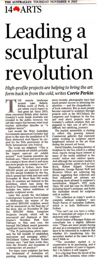 “… David Hulme of Banziger Hulme art consultants (sic) has a slightly different view: ‘There are more people buying art and, as a consequence, more people have to be interested in sculpture. But whether it’s transferring into the secondary market at the same level, I don’t think so. The secondary market is so conservative in its purchasing, and it will take a number of years to happen. But I do believe it will happen.’ …