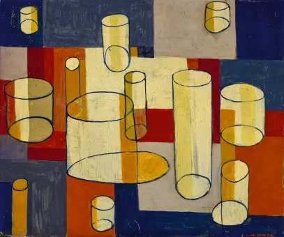 Lot 41 – Ludwig Hirschfeld-Mack, Composition with Cylinders, c1922. Tempera, 37.5 x 44.5 cm, est. $40,000-$60,000. Bauhaus Brilliance