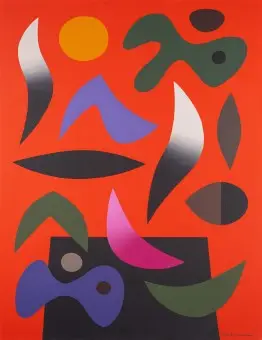 Lot 43 – John Coburn, Song of India, 1974. Synthetic polymer paint, 120 x 91 cm, est. $30,000-$40,000. Singing Sweetly