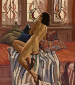 Lot 47 – Herbert Badham, Nude Model, 1934. Oil on canvas, 39.5 x 34 cm, est. $40,000-$60,000. Badham’s The Bold and The Beautiful