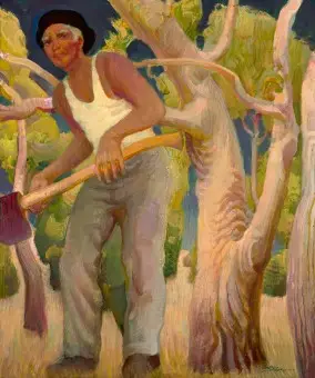 Lot 58 – Murray Griffin, The Woodcutter, c1948. Oil, 81 x 66 cm, est. $10,000-$15,000. Chop Chop