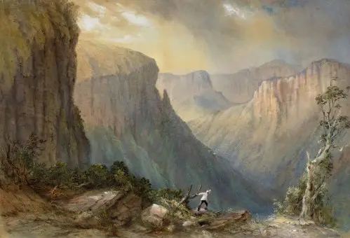 Lot 66 – Conrad Martens, Govetts Leap, 1876. Watercolour and gouache, 44.5 x 64.5 cm, est. $30,000-$40,000. Blackheath Bling