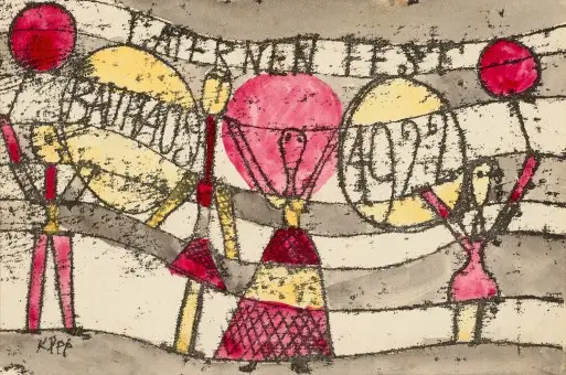 Lot 82 – Paul Klee, Laternenfest Bauhaus, 1922. Colour lithograph and watercolour on paper, 9 x 13.5 cm, estimate $8,000-$12,000. It’s Paul Klee for Me!